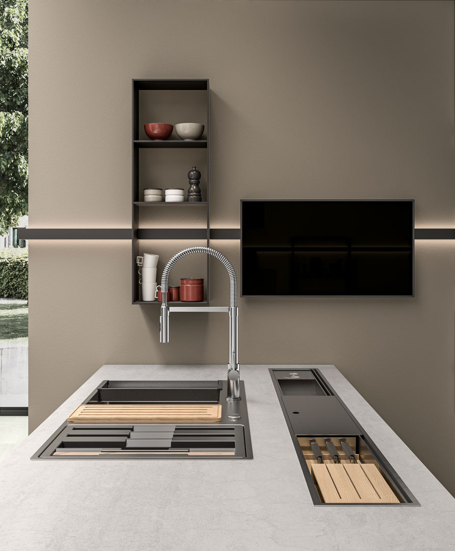 Scopri l’essenza del design d’arredo con “Shade Lab” di Lube Cucine, una cucina su misura pensata per chi ama l’arredamento moderno e funzionale. Perfetta per giovani coppie e famiglie dinamiche, questa cucina combina l’eleganza del legno con la resistenza del quarzo, offrendo una soluzione robusta e di stile per il tuo spazio culinario. Gli elementi in acciaio aggiungono un tocco di sofisticatezza industriale, mentre la modularità del design permette di personalizzare la disposizione secondo le tue esigenze, garantendo praticità e comfort. Lube Cucine ti invita a trasformare la tua casa in un ambiente accogliente, dove tecnologia e estetica si incontrano armoniosamente.